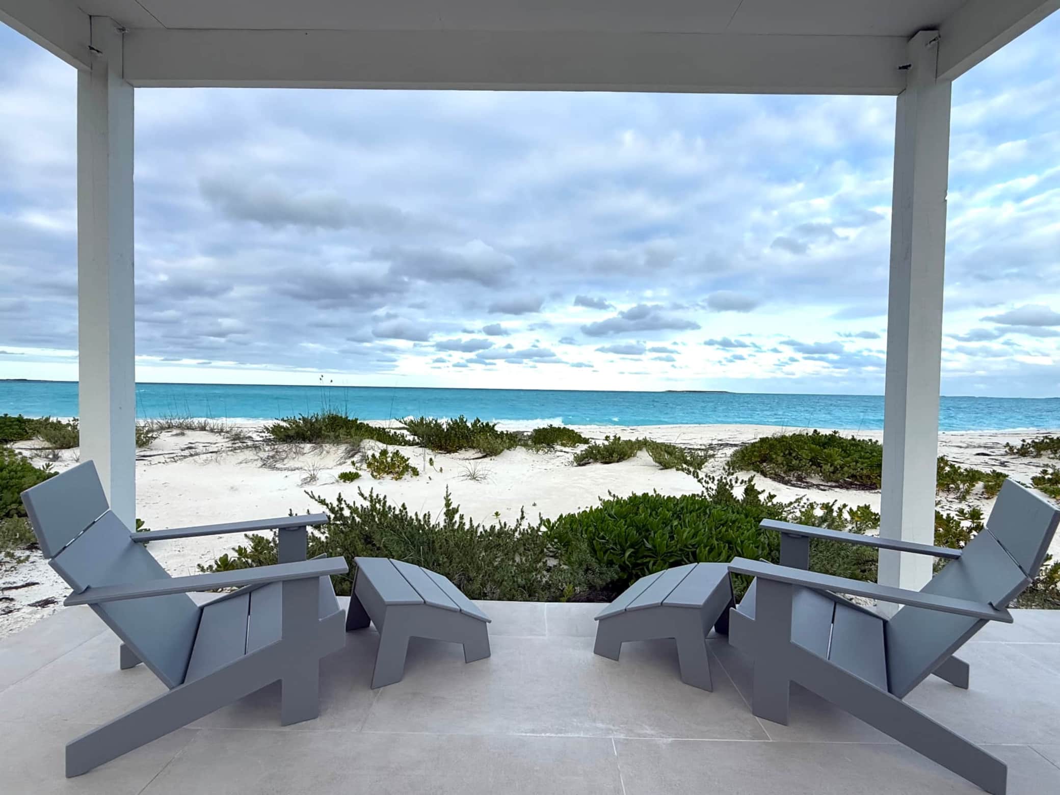 Beyond Blue Exuma, a modern beachfront villa was fully renovated and is now ready for your stay! Just a 3 minute drive from Exuma’s International Airport, the villa features a heated salt-water pool and a pickleball court, as well as a reliable propane generator for peace of mind during your stay.  From the back door and elevated deck, enjoy a panoramic view of coconut, frangipani, kamalame and palm trees with the breathtaking view of the ocean beyond. The villa comes with beach chairs, umbrellas, and boogie/paddle boards to add to your enjoyment. And when it gets too hot, the gazebo provides shade and a place to meditate or exercise on the attached yoga platform. Take a walk on the neighboring mile of pristine beach, and be sure to stop at Tim’s on the Bay, a popular restaurant, just a five minute walk away.